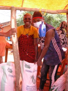 Charles Emmanuel and Hamza Saidi, who have recently passed the 3-year VETA farming course at Kiwanda College, were pleased to share their knowledge of crops and livestock with locals. Peter Shemweta, who has taught agriculture for many years, guided and assisted them.
