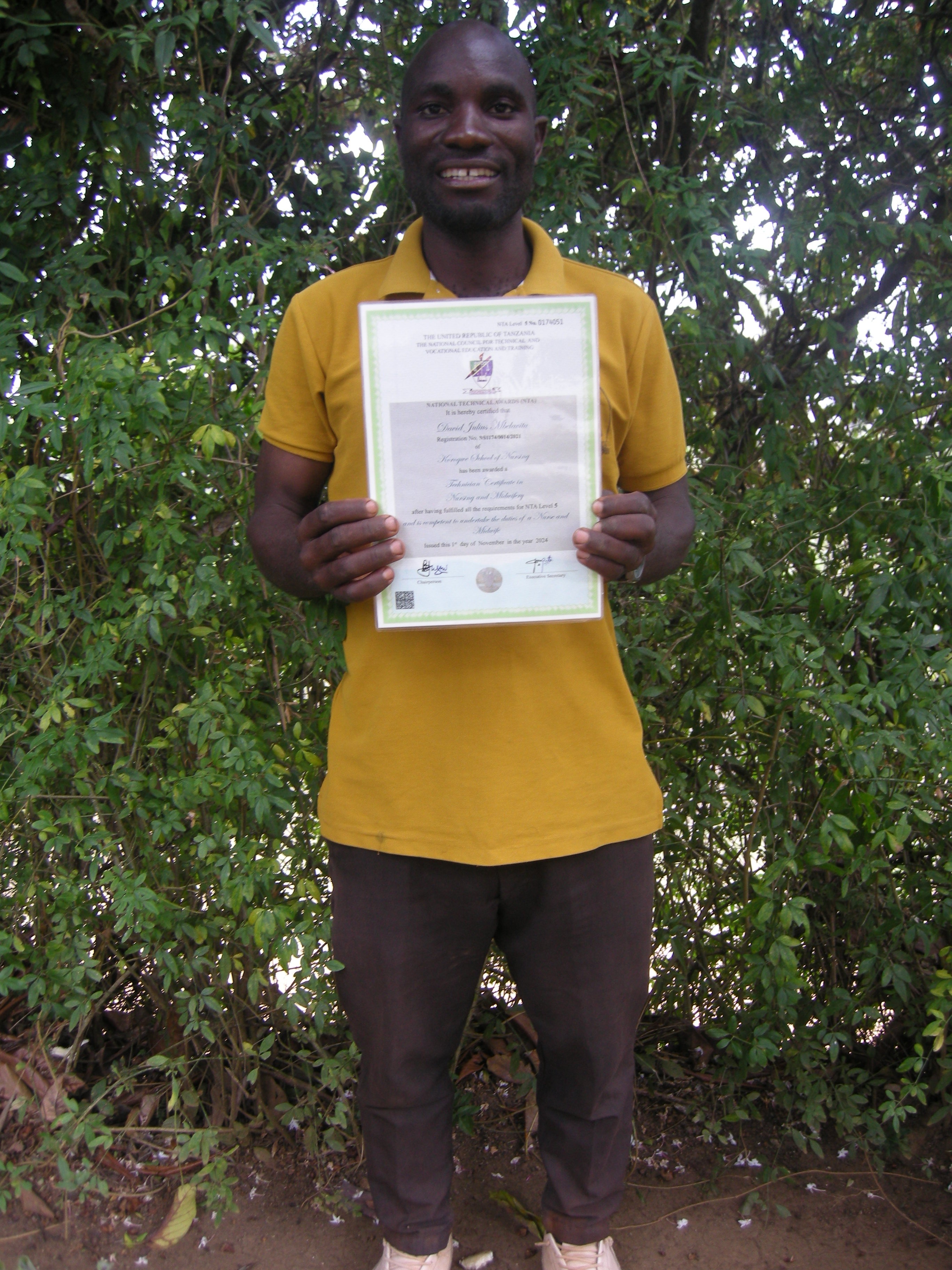 Congratulations to Simoni Charles from Yamba who has passed his 3-year Secretarial and Computer Application course at VETA (Vocational Education and Training Authority) in Tanga. Thank you to his Simba Club sponsor in the UK for supporting him.